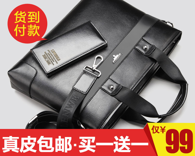 男士真皮商务手提包 牛皮公文包单肩包斜挎包!一套够值!