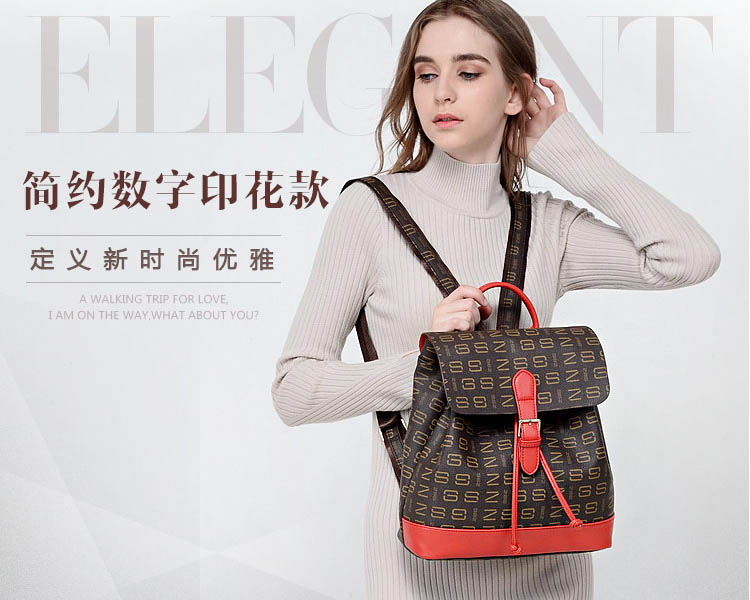 印花抽带搭扣休闲双肩包