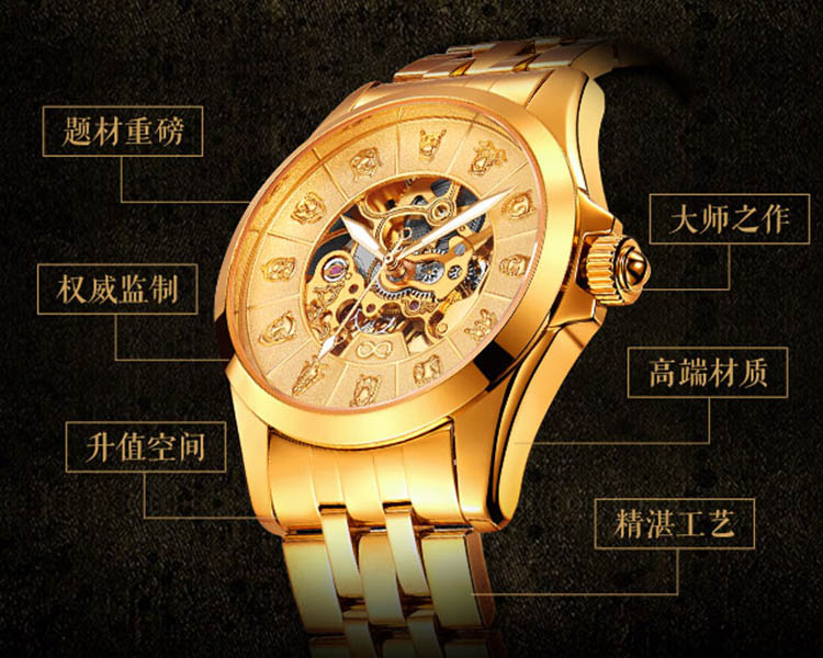 全金色十二生肖镂空全自动机械腕表