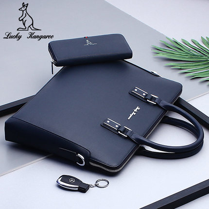 1分钟前幸运袋鼠男包商务包男士手提包公文包 - 黑色大号无手包
